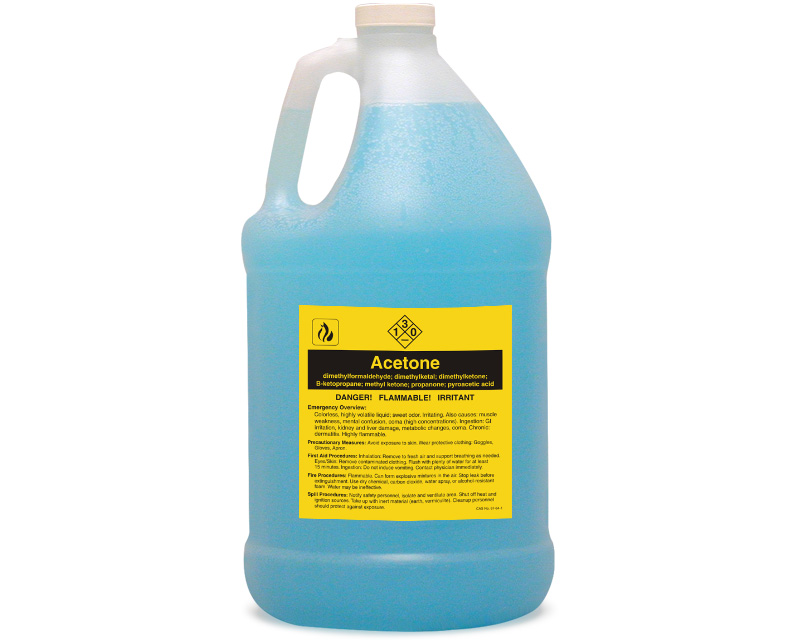 Acetone Labels reduce the chances of exposure to chemical hazards in the workplace. These labels mark containers and warn employees and workers of areas that contain Acetone.