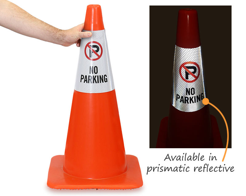 Yes. Our cone message collars are made from durable materials that hold up in outdoor conditions, making them suitable for parking lots, construction sites, loading docks, and outdoor event areas. Paired with standard orange traffic cones, they create highly visible, informative warnings that communicate the specific hazard or restriction beyond what a bare cone conveys on its own.