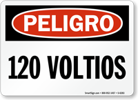 Lurking electrical hazards should always be accompanied with a sign. Alert Spanish-speaking employees of imminent danger with this 120 Voltios OSHA Peligro sign.