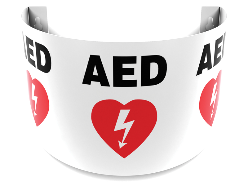 Why limit exposure to critical safety equipment when you have the option of 180 degree projecting signs. This versatile outward projecting sign with message printed on three sides draws attention to 'AED' in your facility.