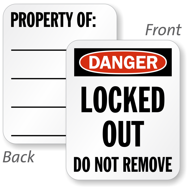 This OSHA Danger Locked Out Padlock Label Set has writing space on the back label to mention owner of property or equipment being locked up.