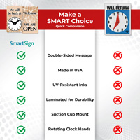 2-Sided Be Back Clock Sign: We Will Be Back At (with Clock) / Welcome We Are Open BB-1001 Learn More...