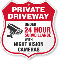 Private Driveway Shield Sign: Under 24 Hour Video Surveillance By Night Vision Cameras