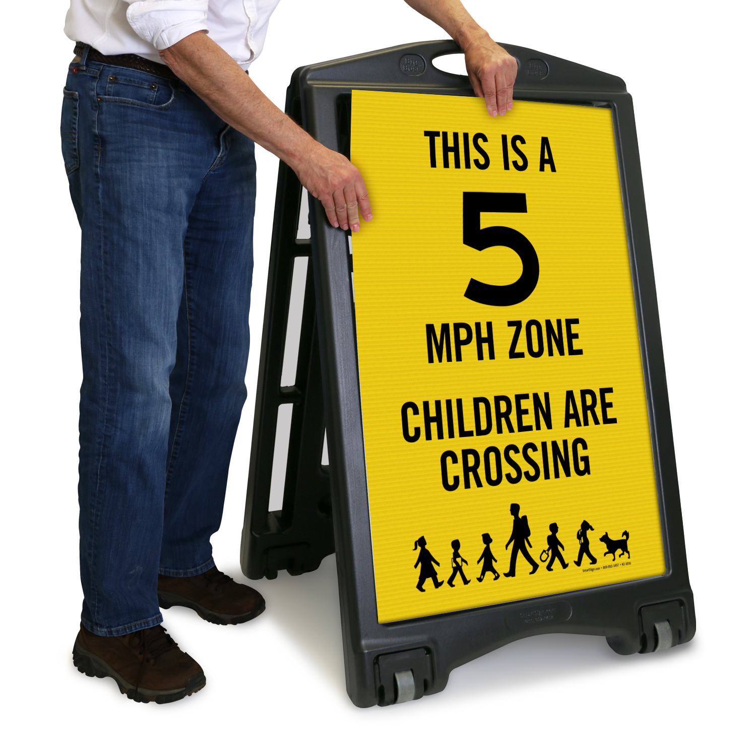 Use this portable A-frame sidewalk sign kit to inform people about the speed limitations in your area.