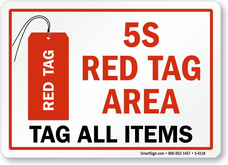 Designate 5S red tag area and instruct workers to tag all items, with this bold sign that grabs attention.