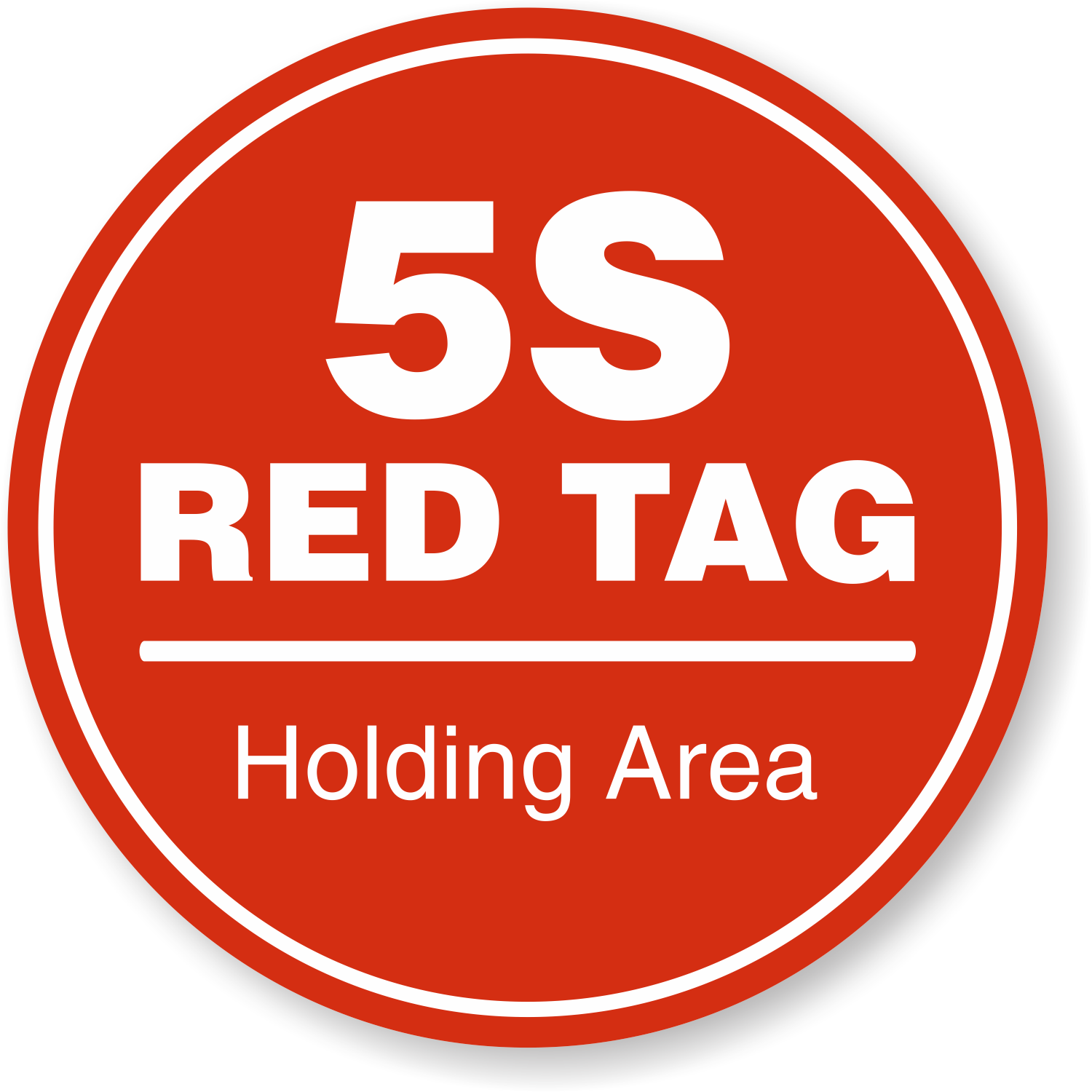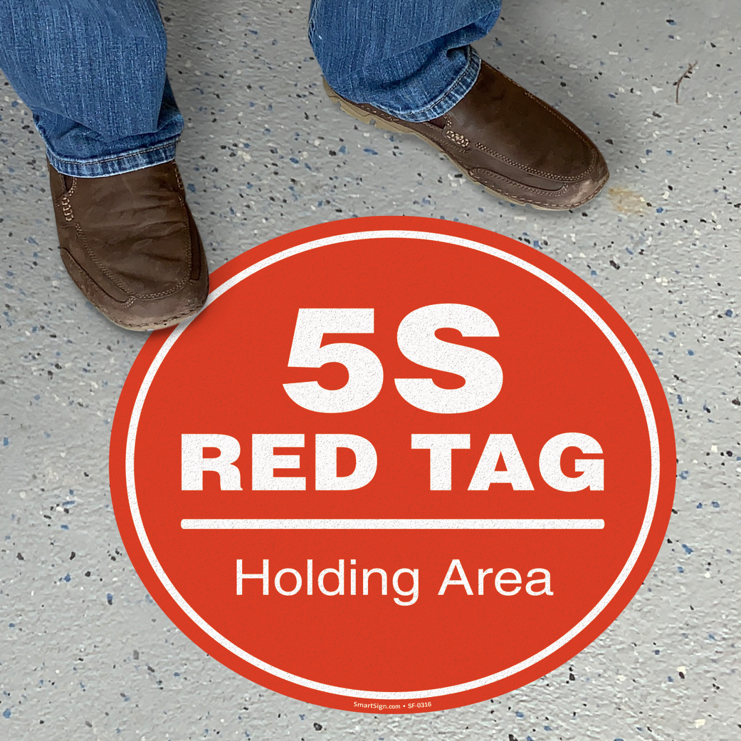 Implement your 5S Red Tag program effectively. 5S Red Tag - Holding Area must be marked clearly with this floor sign.