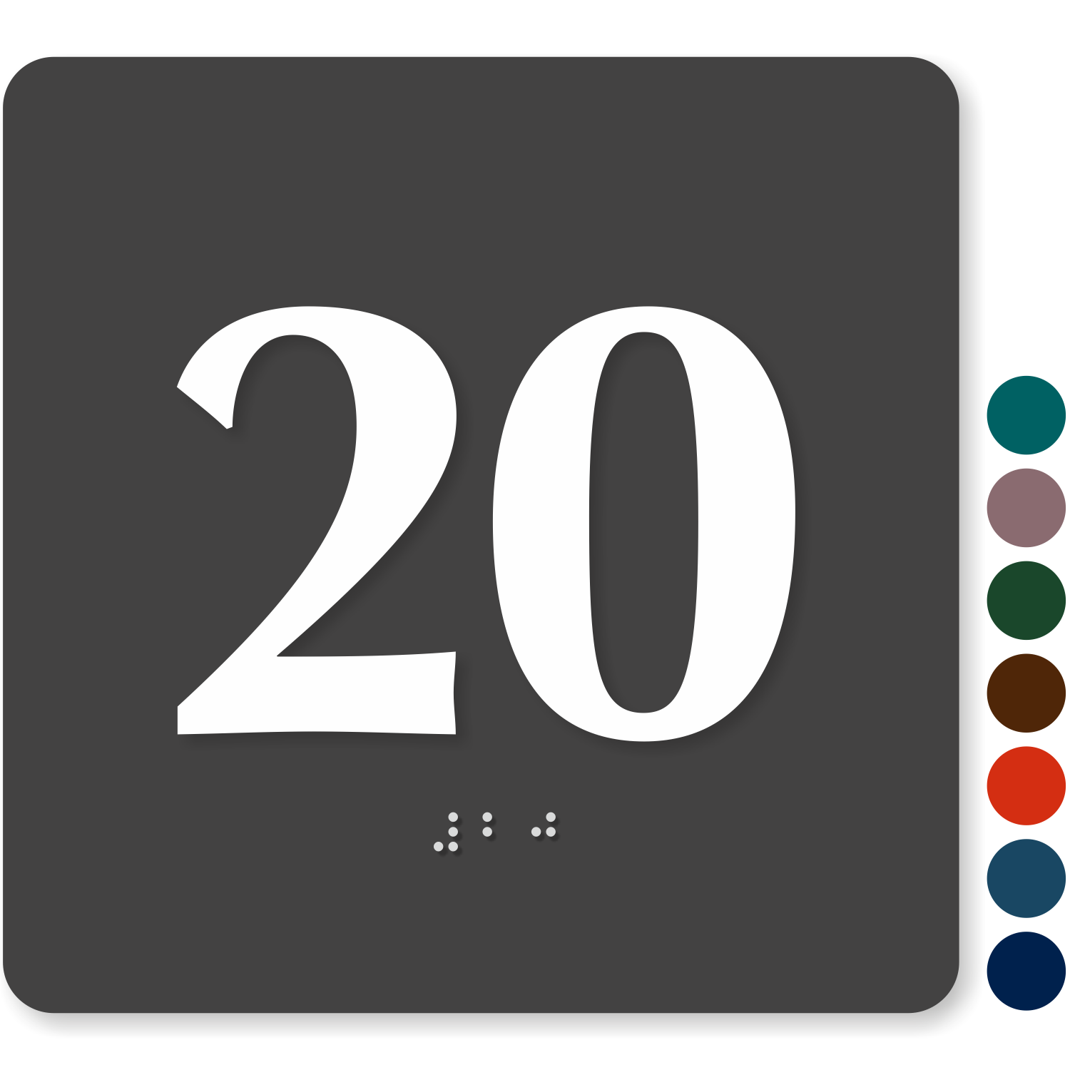 6" x 6" TactileTouchâ„¢ Braille Sign: Sign With Number "20" SE-2682-20