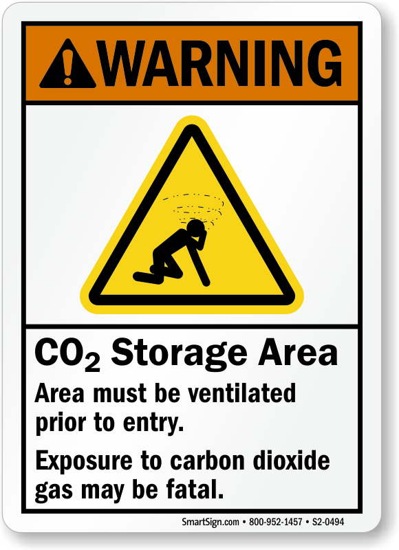 ANSI Warning Sign: CO2 Storage Area, Ventilate Prior to Entry, Exposure to Carbon Dioxide Gas Fatal (With Suffocation Hazard Graphic) S2-0494