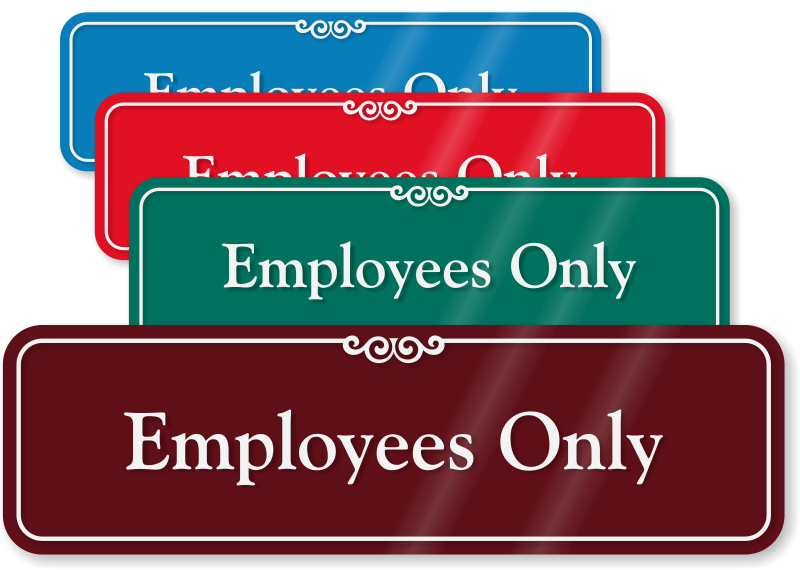 - Employees Only signs include a thick, 1/8" surface with rounded corners and embedded text.