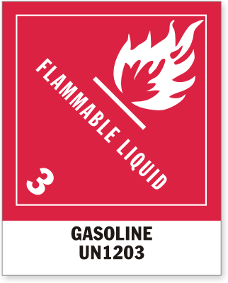 Flammable Liquid Commodity DOT Labels: UN 1203 Gasoline DOT-1013