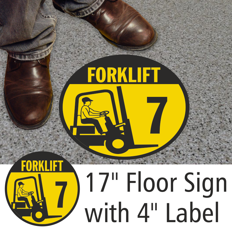 Floor Sign & Label Kit: Forklift ID # -7 (with Graphic)