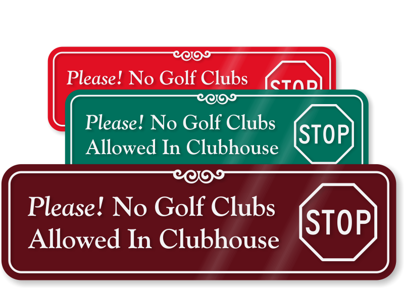 ShowCase™ Wall Sign: Please No Golf Clubs, Allowed in Clubhouse (with STOP Symbol) SE-2645