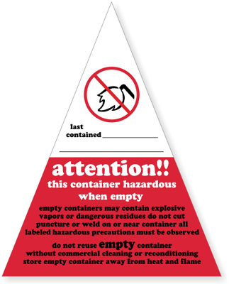 - Labels feature a "No Welding" symbol that helps prevent others, downstream, from potentially lethal vapors.