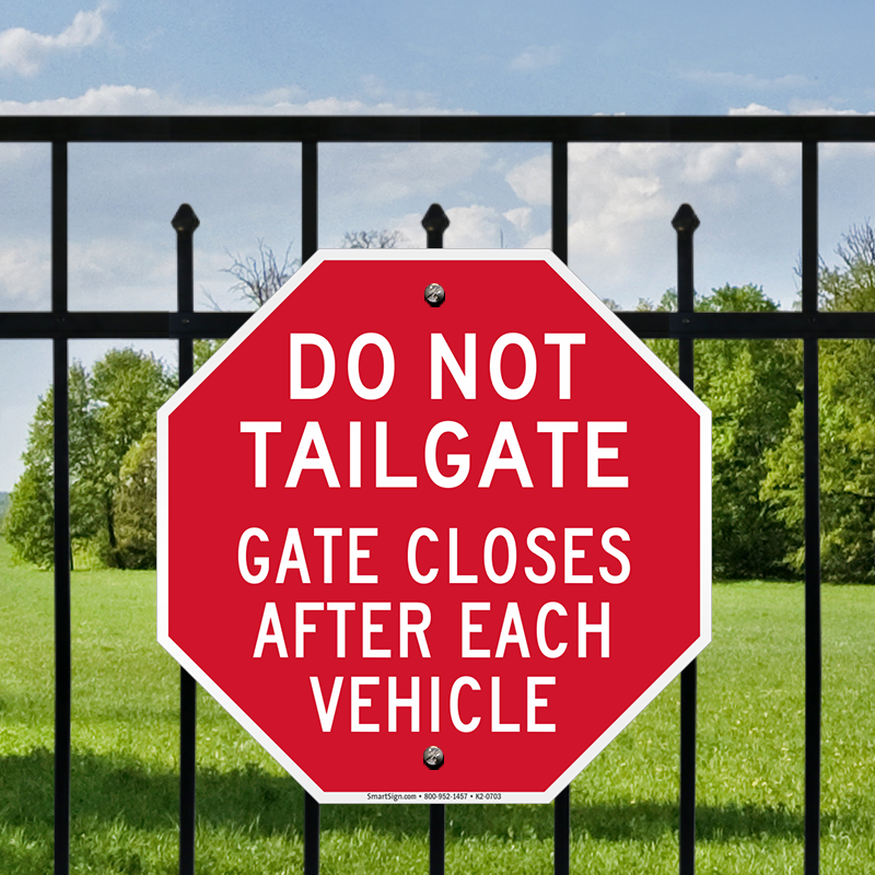 Gate Sign: Do Not Tailgate, Gate Closes After Each Vehicle Learn More...