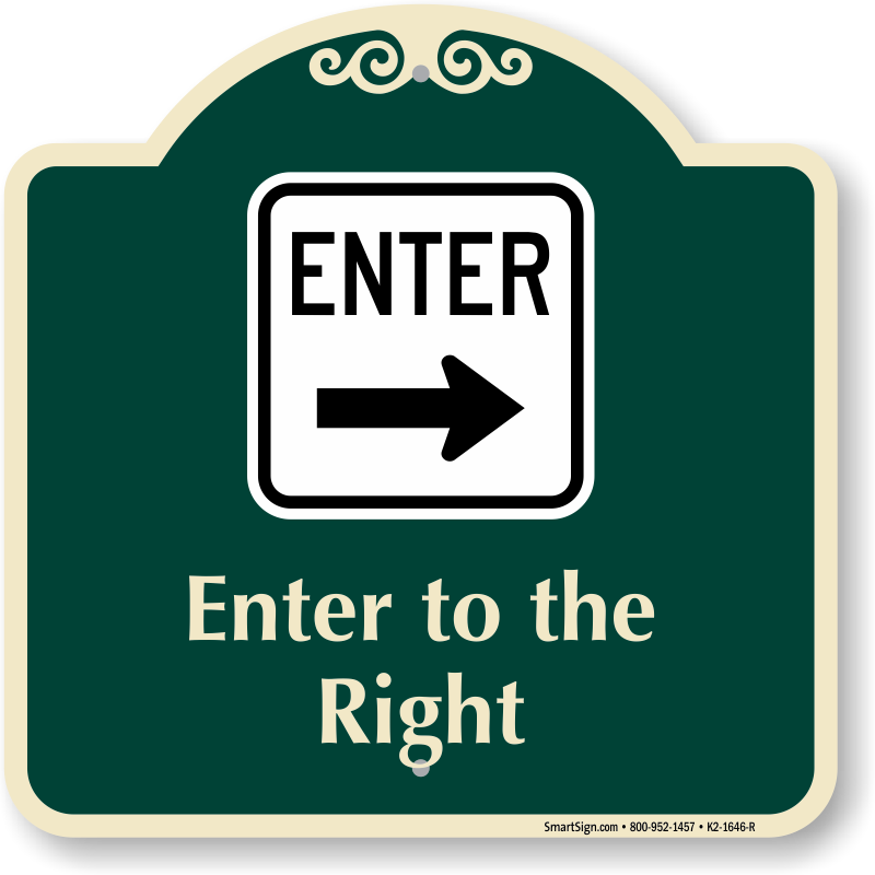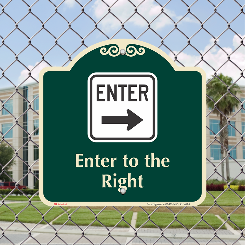 18 in. x 18 in. SignatureSign: Enter To The Right (with Arrow) K2-1646-R