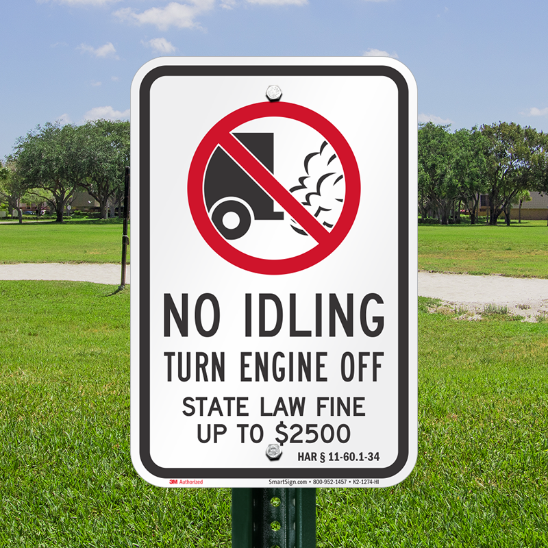 Not abiding rules can be cumbersome at times. Idling Law breakers in Hawaii State, are entitled to a heavy $2500 fine. Get the public to act cleaner, and to be more responsible with this No Idling Sign.