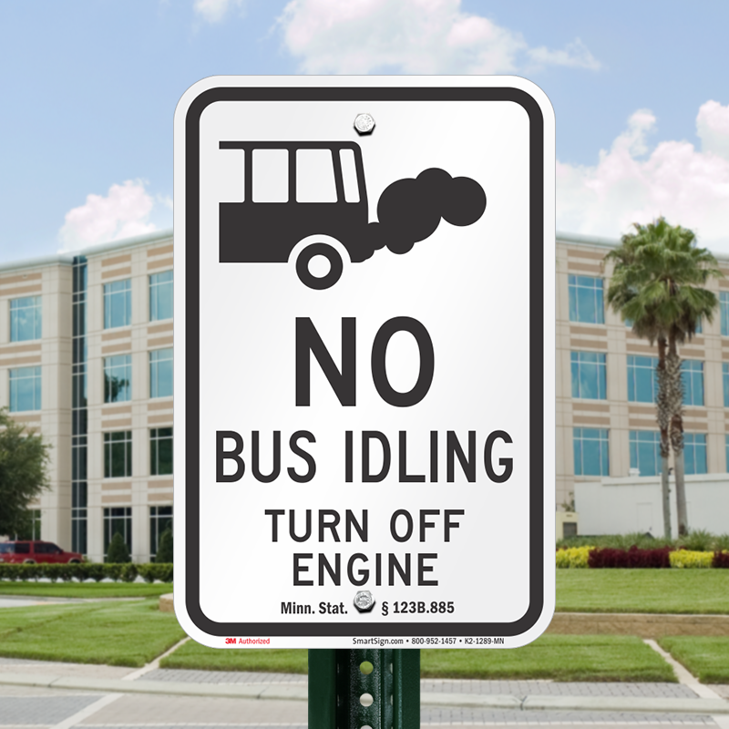 State Idle Sign for School Buses Only, Minnesota: No Bus Idling, Turn Off Engine, Minn. Stat. § 123B.885 K2-1289-MN Learn More...