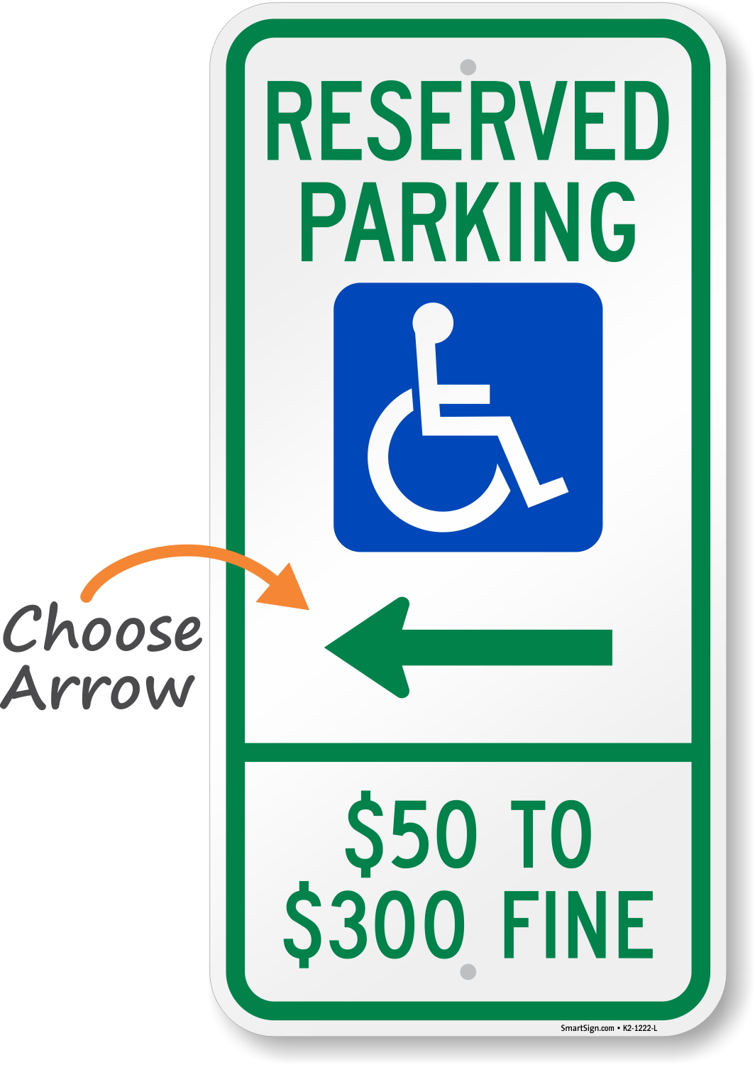 Missouri ADA Handicapped Parking Sign: Reserved Parking, $50 To $300 Fine with Symbol (Choose Arrow) K2-1222-L Learn More...