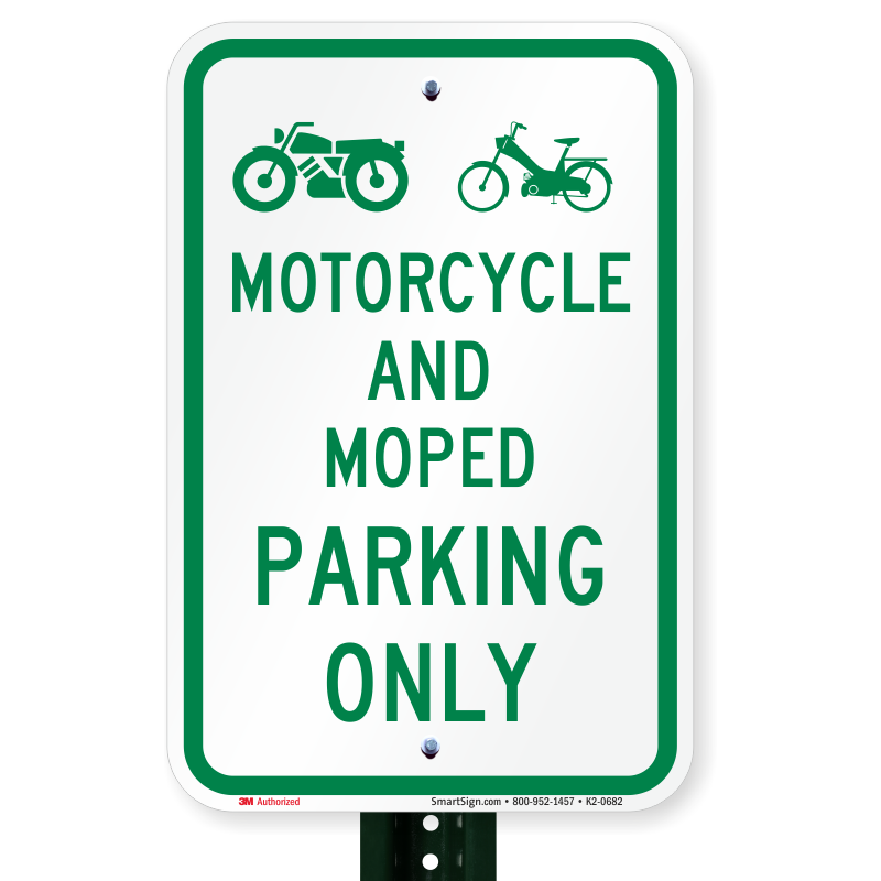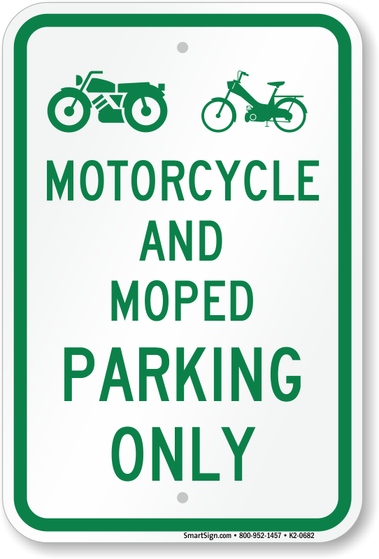Reserved Parking Sign: Motorcycle And Moped Parking Only with Graphics Learn More...
