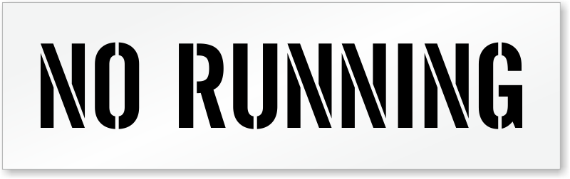 Prohibit running in your parking lot by posting your safety warning message with a reusable pavement and parking lot stencil