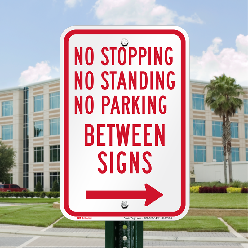 Use this directional No Parking Sign in combination with a left directional No Parking sign to mark areas where drivers may not stop, stand, or park their vehicles.