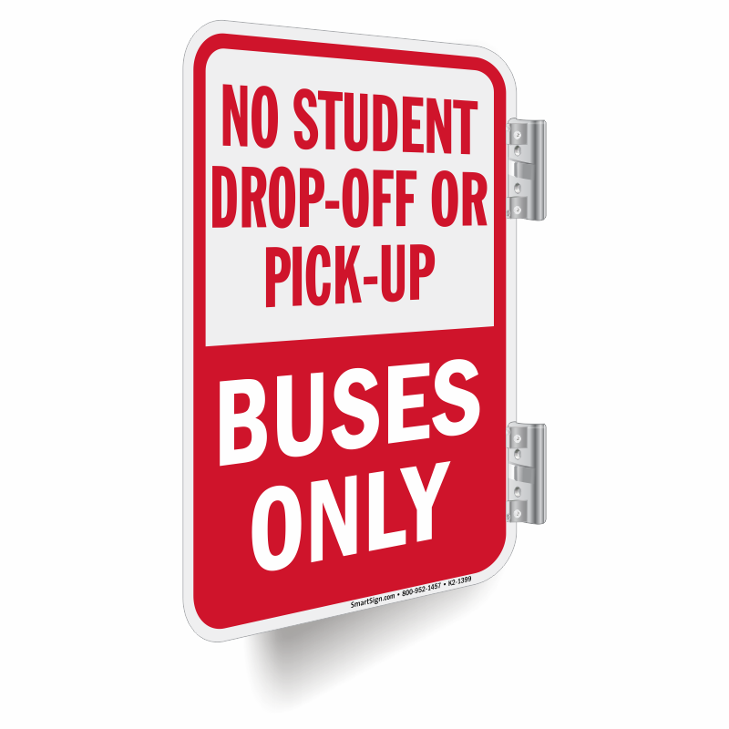 Use this Double-Sided Sign to mark the parking space reserved for buses at your facility and inform drivers that student pick-up or drop-off is not permitted in the area.
