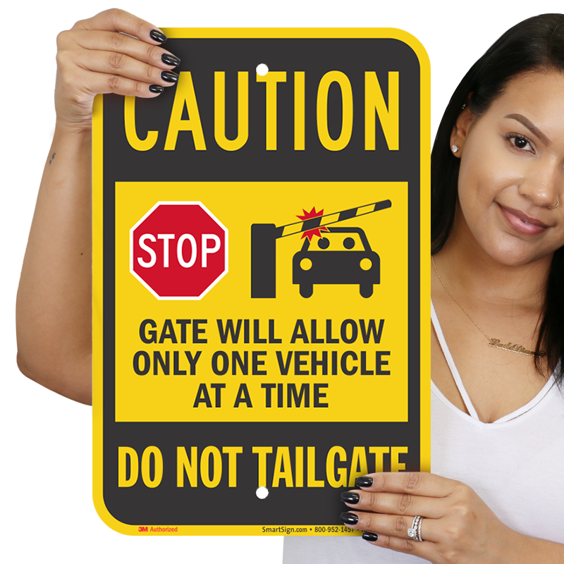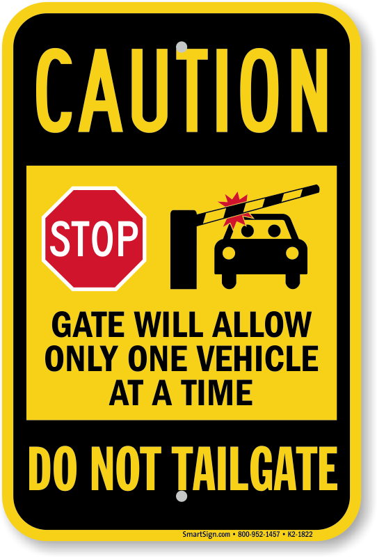 Do Not Tailgate Caution Sign: Stop, Gate Will Allow Only One Vehicle At A Time Learn More...