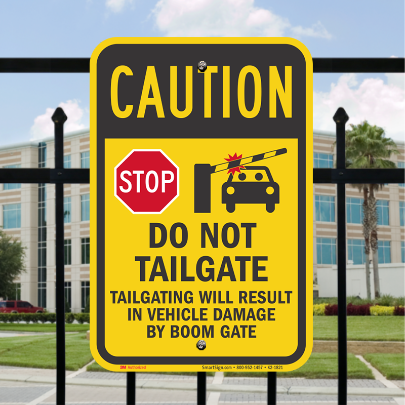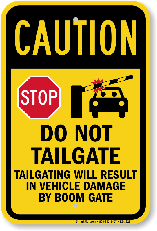 Do Not Tailgate Caution Sign: Stop, Tailgating Will Result In Vehicle Damage By Boom Gate K2-1821 Learn More...