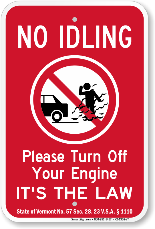 State Idle Sign for Vermont: No Idling, Please Turn Off Your Engine, Its The Law, State Of Vermont No. 57 Sec. 28. 23 V.S.A § 1110 K2-1308-VT Learn More...