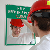 Cleanliness promotes an attitude of safety. Use a "Help Keep This Place Clean" Mirror Safety Message Sign. Let everyone know that you care. Issuing a regular reminder will help your staff remember to maintain the space that they work in.