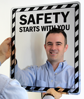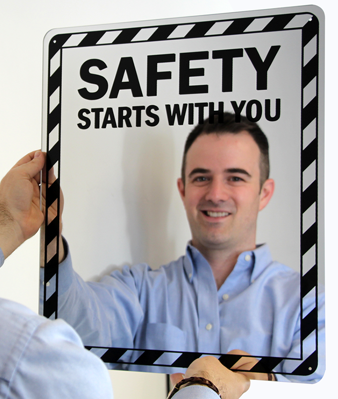 Install this Mirror Message Sign and demonstrate your commitment towards safety. Professionally designed sign comes with rounded corners for injury-free installation. Striped border increases visibility. Ideal for all kinds of facilities.