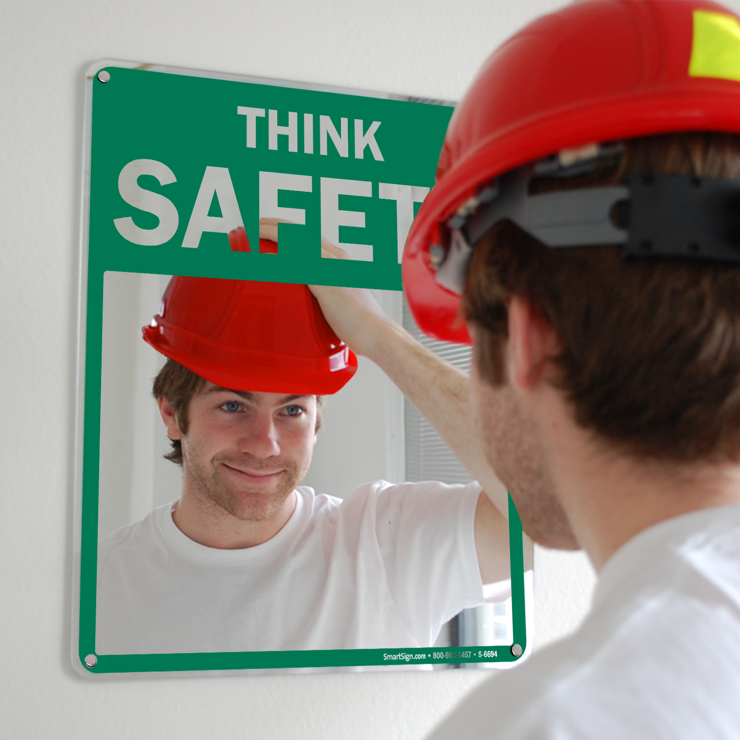 Organize your emergency and safety procedures with these Safety Mirror Message Signs. A simple reminder is always effective. This bright "Think Safety" Sign serves as this reminder to get your workforce thinking about safety!