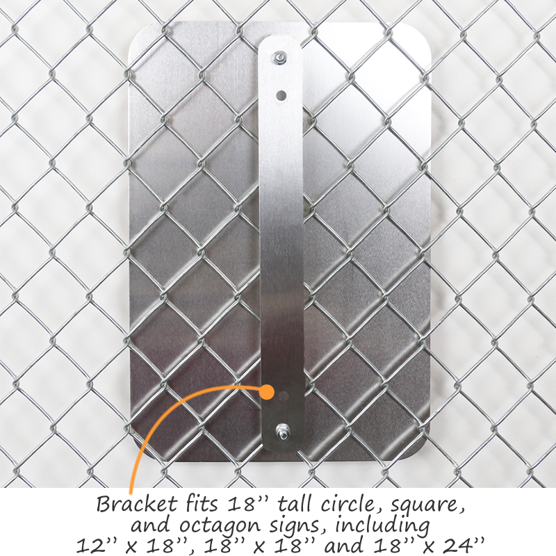 - Bracket fits 18" tall signs, including 18" x 12", 18" x 18" (circle, square, and octagon) and 18" x 24" signs.