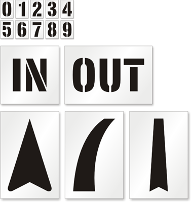- Also features 18'' IN & OUT stencils for exit and entry areas.
