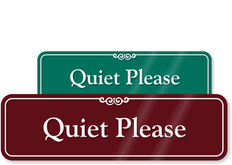 - Quiet Please! This sturdy sign is 1/8" thick and features a glossy surface and elegant rounded corners.