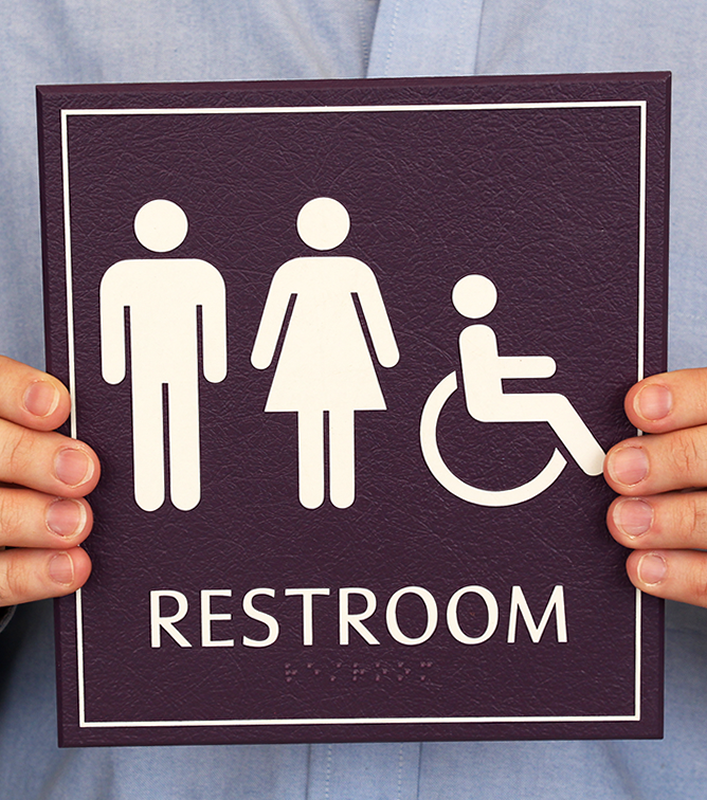 LeatherTex Restroom Sign with Grade II Braille: Restroom, Unisex and Handicapped Symbols SE-2044 Learn More...