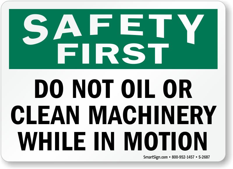 OSHA Safety First Sign: Do Not Oil Or Clean Machinery While In Motion S-2687