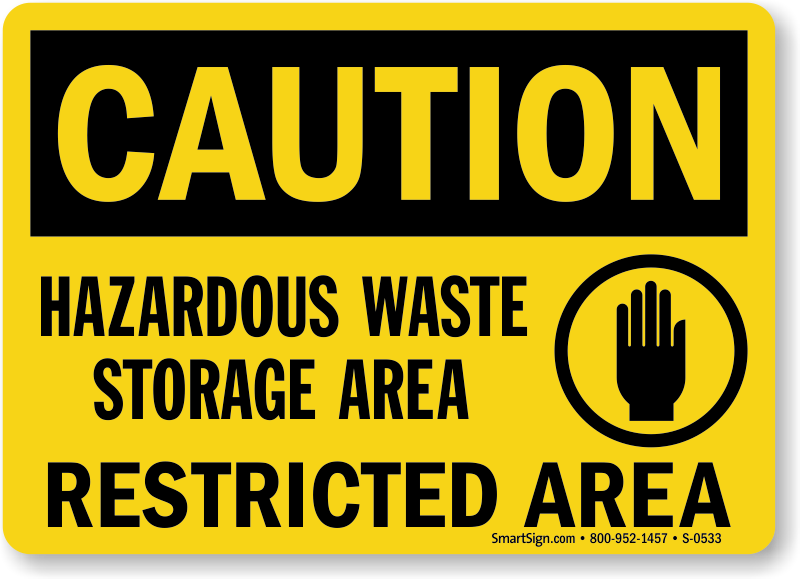 Caution Sign: Caution: Hazardous Waste Storage Area Restricted Area (with hand graphic) S-0533