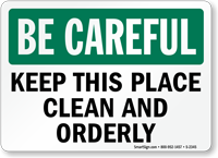 A sign makes everyone take safety seriously. This bold sign will make sure that your employees Keep This Place Clean and Orderly.