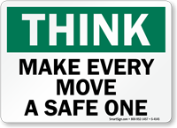 Think Safety Slogan Sign: Think Make Every Move A Safe One S-4145