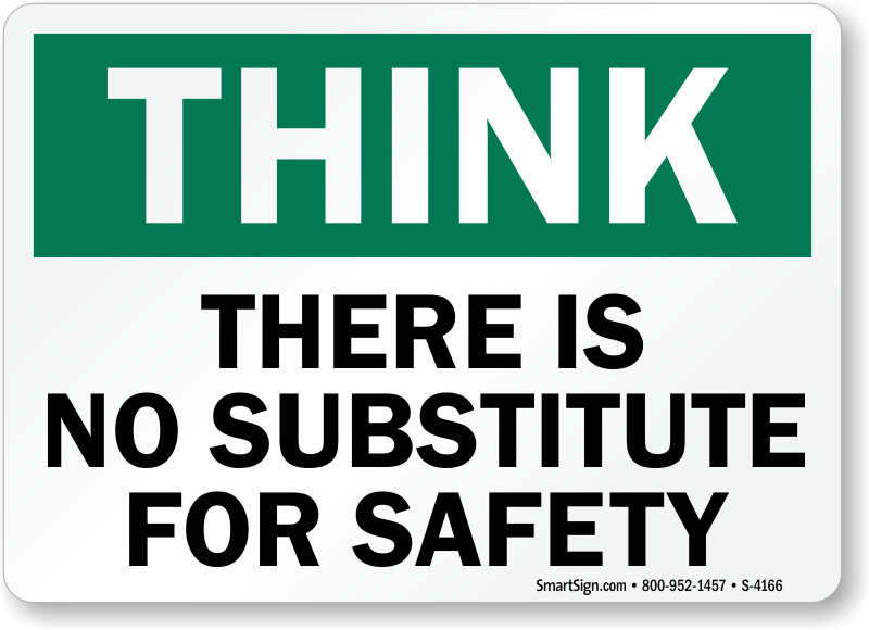 Show you care. Use a "there is no substitute for safety" sign. Signs work - and they never stop working.