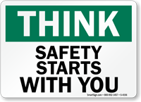 Think Safety Slogan Sign: Think Safety Starts With You S-4156