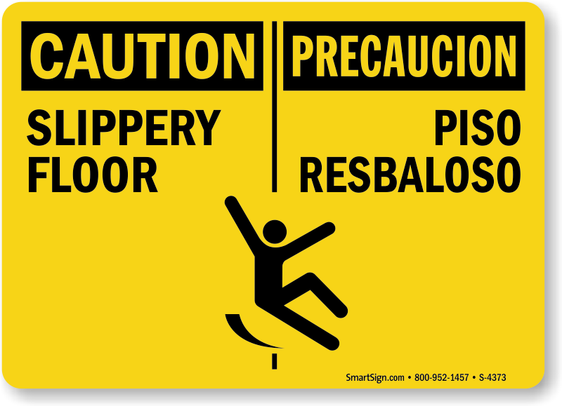 Bilingual Caution / Precaucion Sign: Slippery Floor, Piso Resbaloso (with Graphic) S-4373