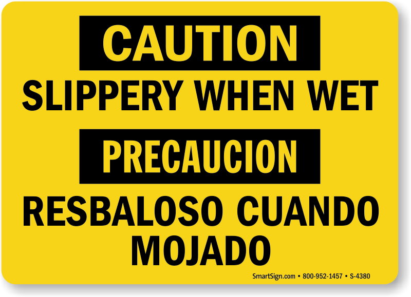 Make sure people watch their step. Use a "slippery when wet (bilingual)" sign. A sign is proven and effective.