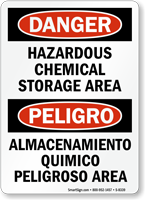 An unmarked chemical drum can be a serious hazard. Bilingual Hazardous Chemical Storage Area Signs inform everyone of the necessary information.