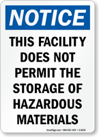 If there's a sign there, people will listen. A This Facility Does Not Permit The Storage Of Hazardous Materials Sign keeps your storage facility safe and clean.