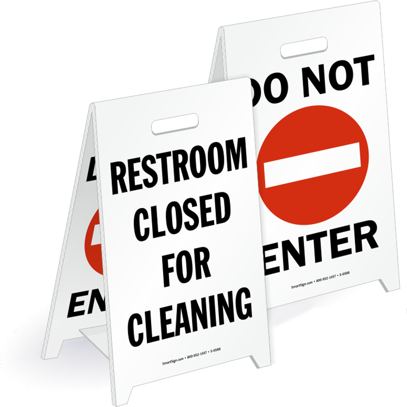 Choose a bold floor sign to mark the temporary closing of your bathroom. These signs are great for any busy facility, to keep patrons out of the restroom during cleaning.