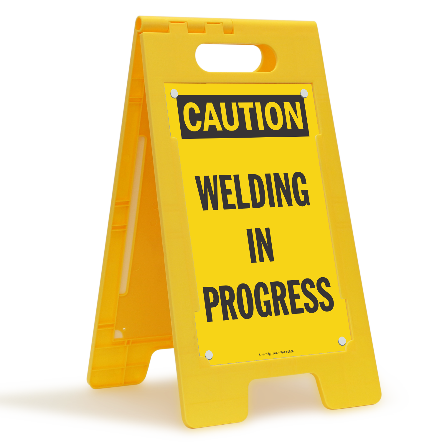 There are multiple risks involved with welding, from the dangerous sparks to the toxic inhalants. This fold-up floor sign is an easy way to mark a welding site, alerting others and preventing accidents in your facility.