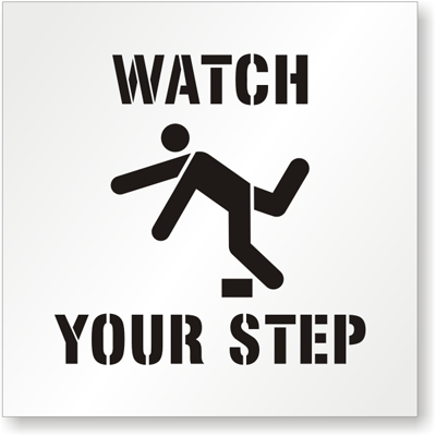 Prevent unwanted slips, trips or falls. Watch Your Step Warning stencils remind people to stay alert in potentially dangerous areas.