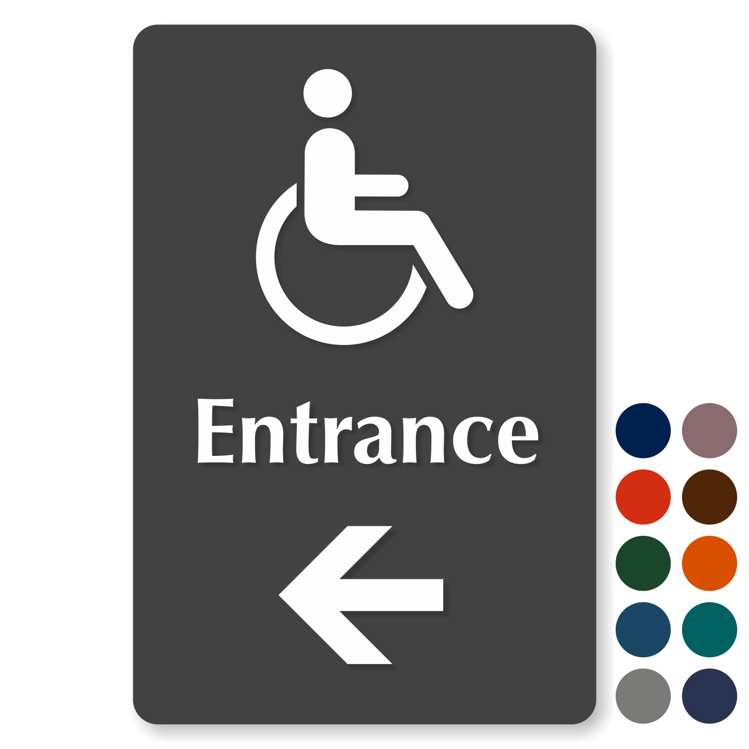 Mark accessible entrances with an outdoor durable sign featuring the ISA pictogram. This sign is required by many states, including California.